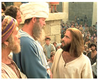 U ovom razgovoru Isus je izneo nekoliko tvrdnji. Rekao je da je On svetlost sveta, da može ljude osloboditi greha i da svako ko veruje u Njega neće umreti. Jevrejske vođe su se ponovo razljutile Njegovim naizgled besmislenim tvrdnjama, ali su očigledno odlučili da Ga izvrnu ruglu, nadajući se da će otkriti Njegove nedoslednosti. Ni Abraham, poštovani osnivač judaizma, nije tvrdio da je besmrtan, pa kako je Isus mogao to tvrditi? Isus im je odgovorio: „ Avraam, otac vaš, bio je rad da vidi dan moj; i vide, i obradova se. “